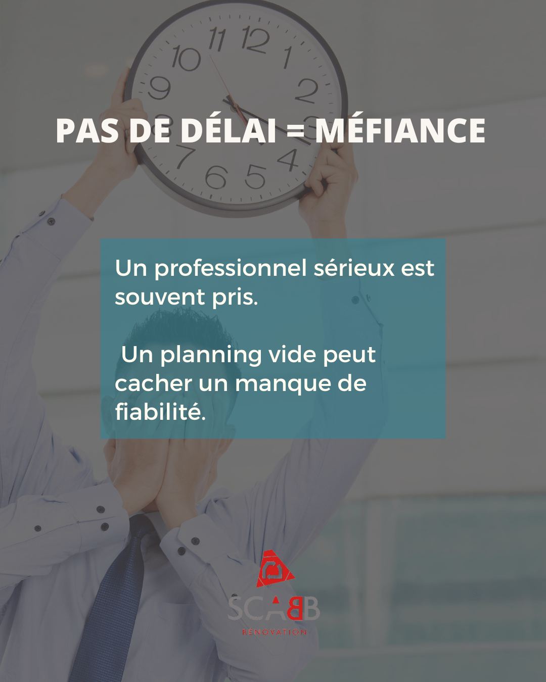 La demande est forte, surtout en rénovation énergétique. Un artisan « disponible tout de suite » = prudence.